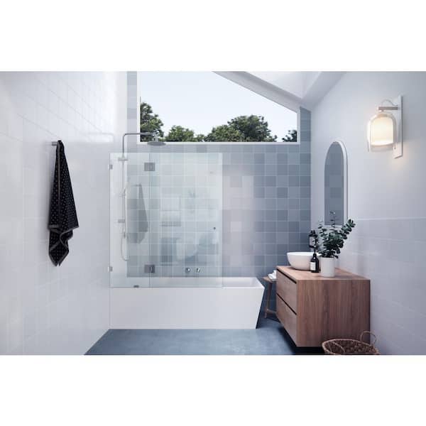 Halo 51 in. W x 58.25 in. H Glass Hinged Frameless Tub Door in Polished Nickel with Clear Glass