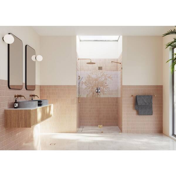 Halo 54.25 in. W x 78 in. H Glass Hinged Frameless Shower Door in Brushed Bronze with Clear Glass