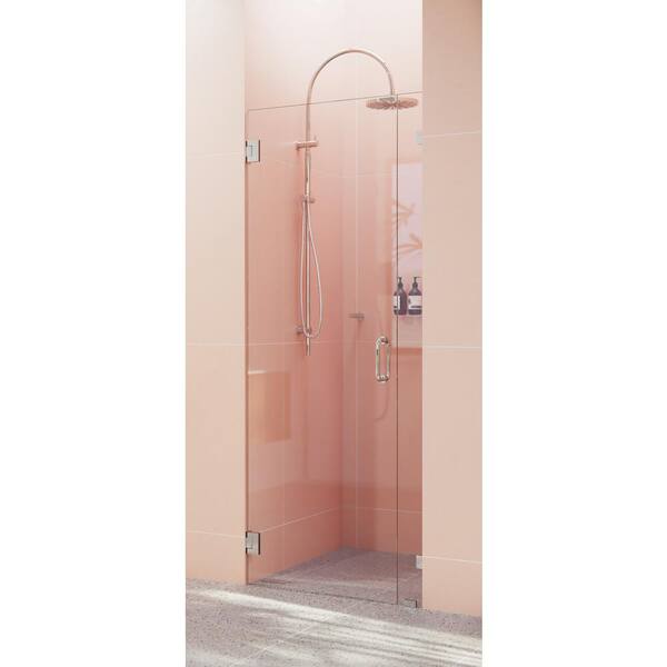 Illume 31.75 in. W x 78 in. H Wall Hinged Frameless Shower Door in Polished Nickel with Clear Glass