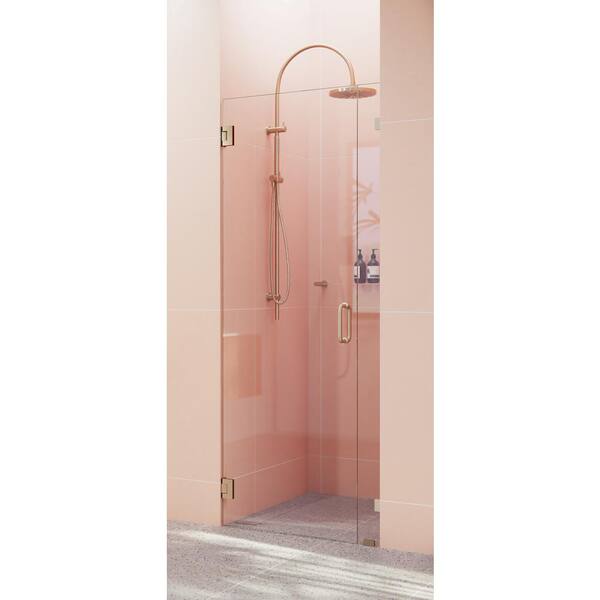 Illume 34.75 in. W x 78 in. H Wall Hinged Frameless Shower Door in Brushed Bronze with Clear Glass