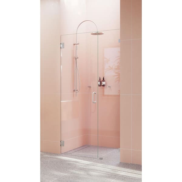 Illume 35.75 in. W x 78 in. H Wall Hinged Frameless Shower Door in Brushed Nickel Finish with Clear Glass