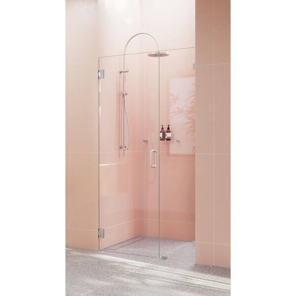 Illume 40.5 in. W x 78 in. H Wall Hinged Frameless Shower Door in Brushed Nickel Finish with Clear Glass