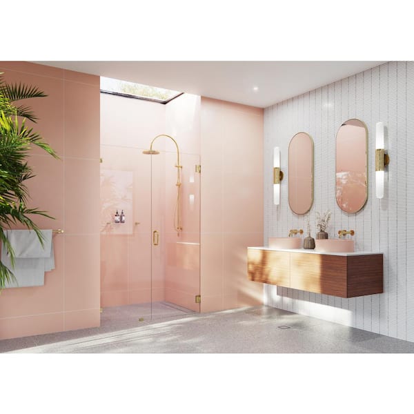 Illume 46.5 in. W x 78 in. H Wall Hinged Frameless Shower Door in Polished Brass Finish with Clear Glass