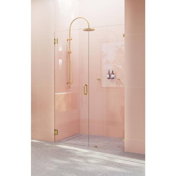 Illume 48.75 in. W x 78 in. H Wall Hinged Frameless Shower Door in Polished Brass Finish with Clear Glass