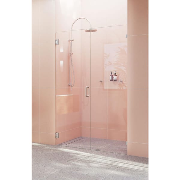 Illume 53 in. W x 78 in. H Wall Hinged Frameless Shower Door in Brushed Nickel Finish with Clear Glass