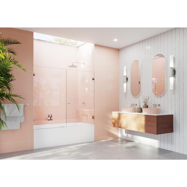 Illume 65 in. W x 58.25 in. H Wall Hinged Frameless Tub Door in Polished Nickel with Clear Glass