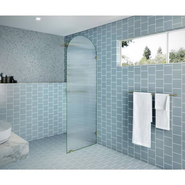 Maven 28 in. W x 86.75 in. H x .375 in. D Frameless Shower Door - Arched Fluted Single Fixed Panel