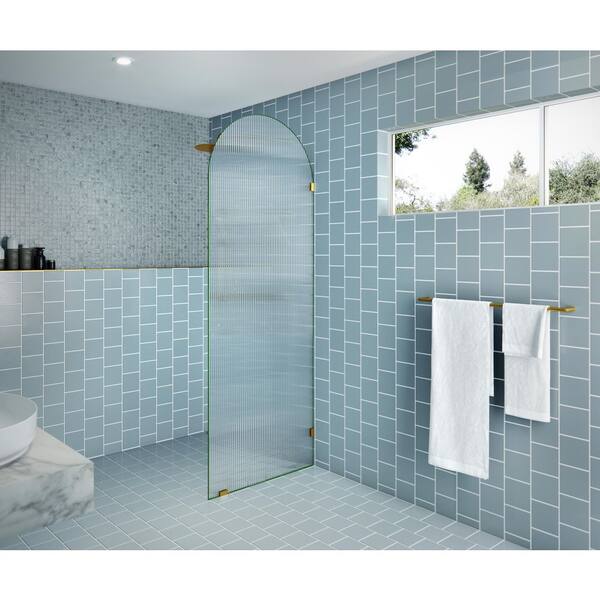 Maven 30 in. W x 86.75 in. H x 0.375 in. D Arched Fluted Single Fixed Panel Frameless Shower Door