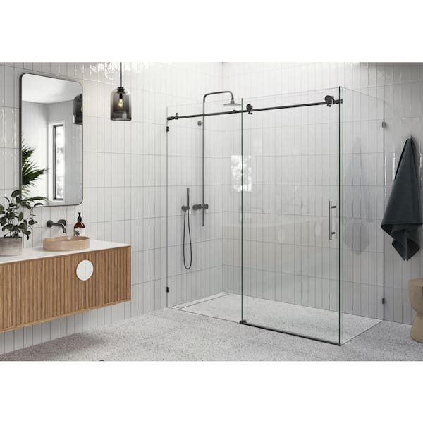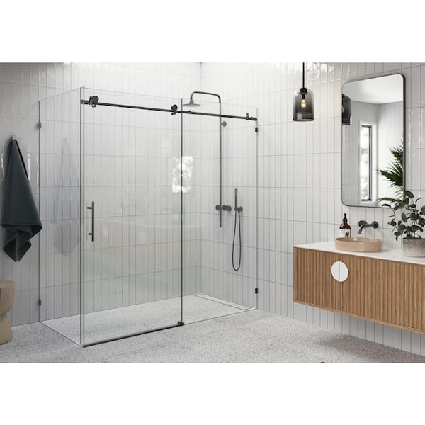 Nova 68 in. W x 78 in. H Rectangular Sliding Frameless Corner Shower Enclosure in Matte Black with Clear Glass