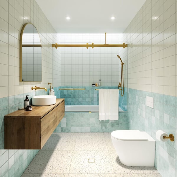 Polaris 60 in. W x 66 in. H Sliding Frameless Bathtub Door with Square Hardware in Satin Brass with Clear Glass