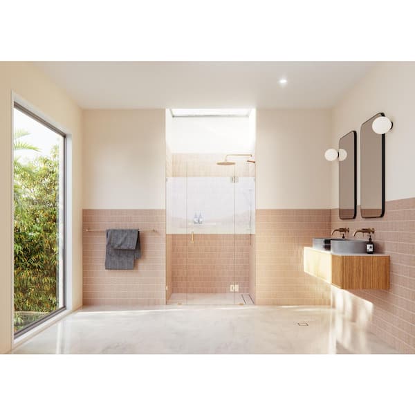 Stellar 46 in. W x 78 in. H Glass Hinged Pivot Frameless 3-Panel Inline Shower Door in Brushed Bronze