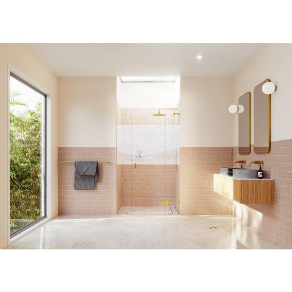 Stellar 51.75 in. W x 78 in. H Glass Hinged Pivot Frameless 3-Panel Inline Shower Door in Polished Brass