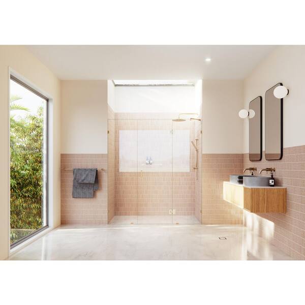 Stellar 65 in. W x 78 in. H Glass Hinged Pivot Frameless 3-Panel Inline Shower Door in Brushed Bronze