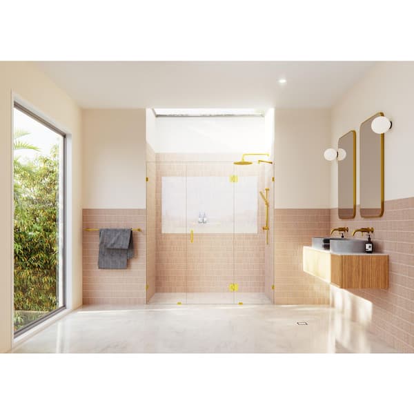 Stellar 71.25 in. W x 78 in. H Glass Hinged Pivot Frameless 3-Panel Inline Shower Door in Satin Brass