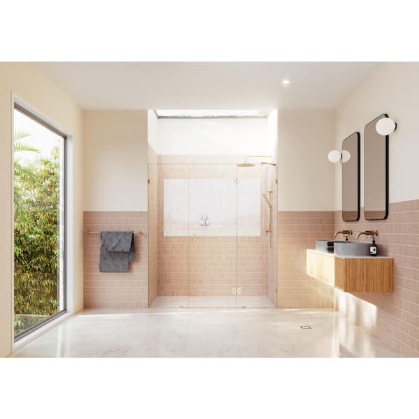 Stellar 71.75 in. W x 78 in. H Glass Hinged Pivot Frameless 3-Panel Inline Shower Door in Brushed Bronze