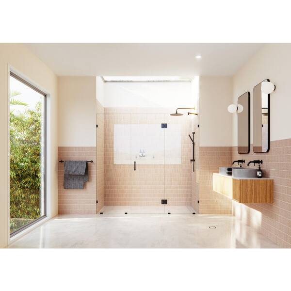 Stellar 96.75 in. W x 78 in. H Glass Hinged Pivot Frameless 3-Panel Inline Shower Door in Matte Black