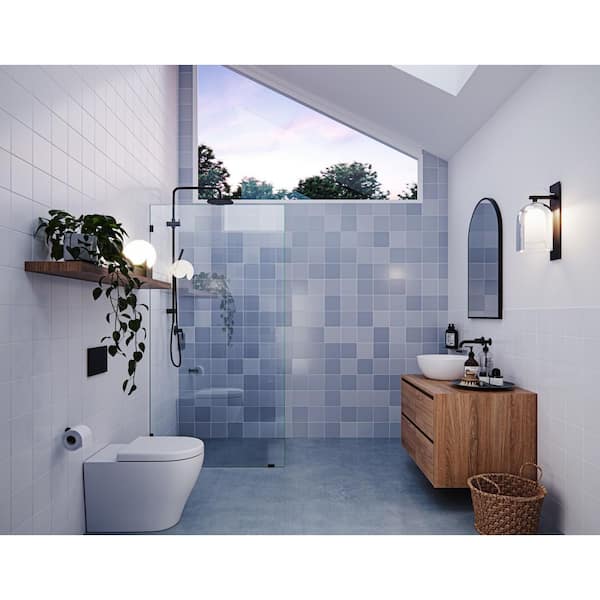 Vela 35.5 in. W x 78 in. H Frameless Fixed Single Panel Shower Door in Matte Black Without Handle