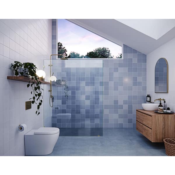 Vela 55 in. W x 78 in. H Frameless Fixed Single Panel Shower Door in Polished Brass Without Handle