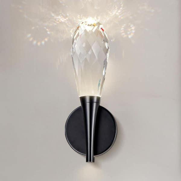 12 in. 1-Light Modern Black LED Wall Sconce, Luxury Globe K9 Crystal Wall Lighting for Living Room, Bedroom, Hallway
