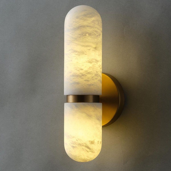 13" 2-Light Gold Natural Alabaster Wall Sconce,Modern Spanish Marble Bathroom Wall Light for Living Room,Bedroom,Hallway