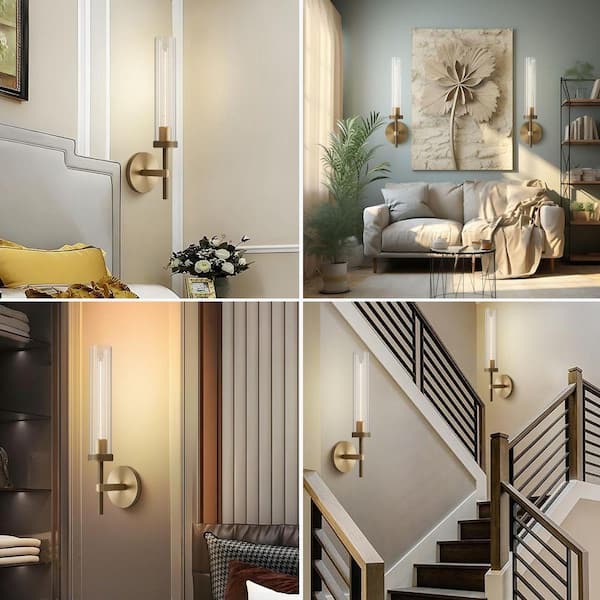 19 in. 1-Light Gold Wall Sconce, Modern Wall Light with Glass Tube for Living Room, Dining Room (2-Sets)