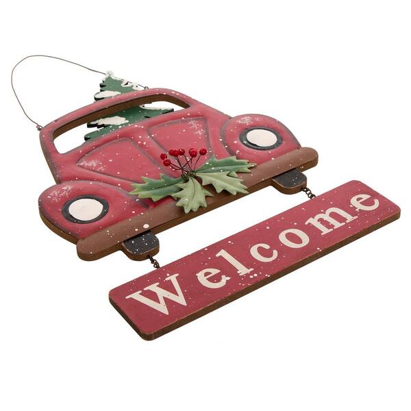 16.14 in. Wooden/Iron Truck Welcome Sign
