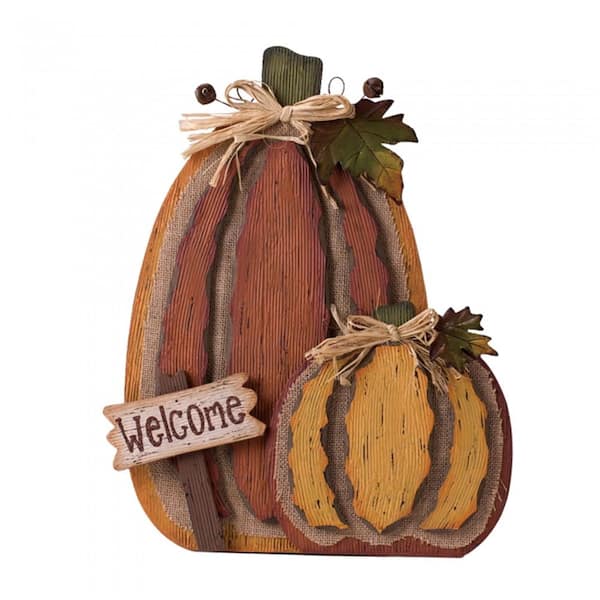 18.91 in. H Burlap Wooden Pumpkin Decor
