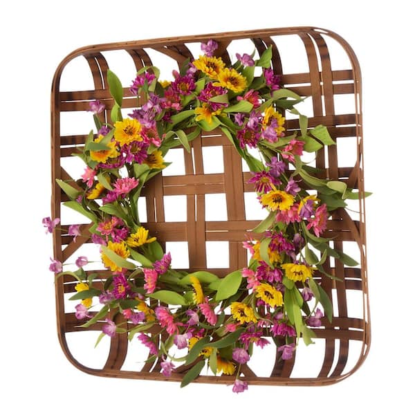 24 in. Dia Artificial Chrysanthemum Wreath with 24 in. L Bamboo Tobacco Basket