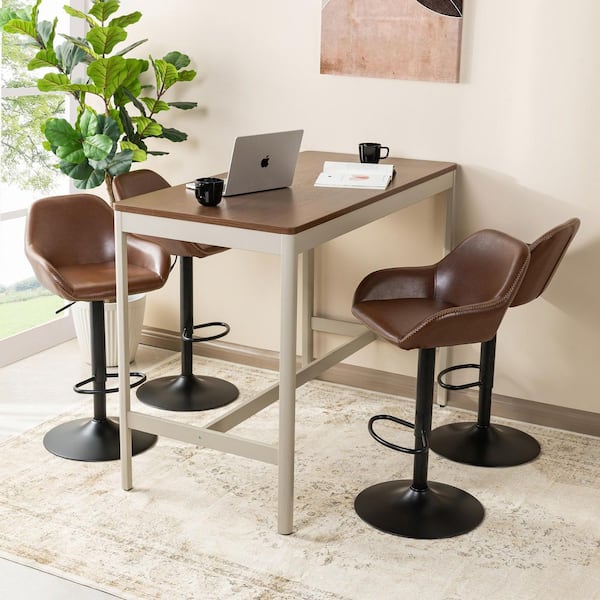 34.25-43 in. H Adjustable Height Mid-Century Modern Brown Leatherette Gaslift 360°Swivel Bar Stool With Low Back