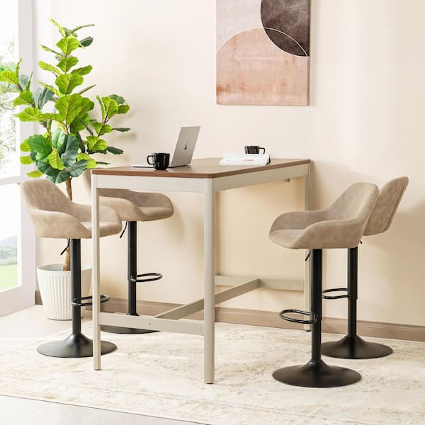 34.25-43 in. H Adjustable Height Modern Khaki Leatherette Gaslift 360°Swivel Bar Stool With Low Back (set of 2)