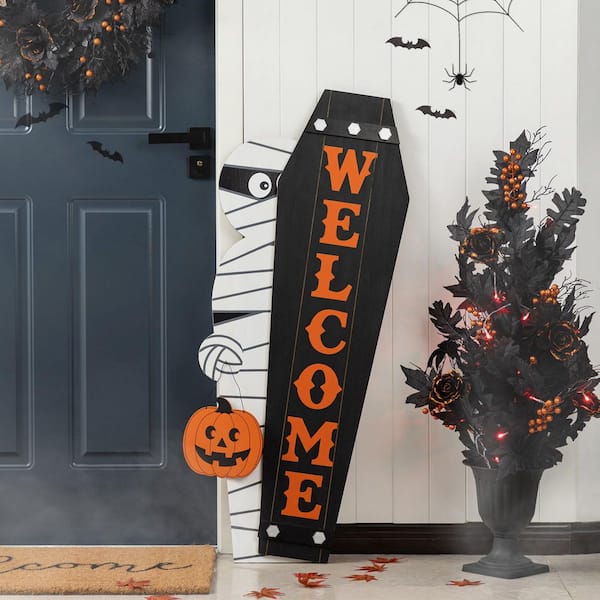 38 in. H and 42 in. H Halloween Wood Mummy and Welcome Coffin Porch Decor, Set of 2 or 1 Piece (2 Function)
