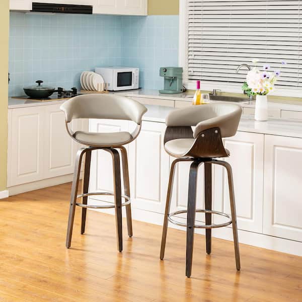 40.5 in. H Mid-Century Modern Gray PU Leather/ Oak bentwood Swivel Chair Low Back Bar Stool (Set of 2)