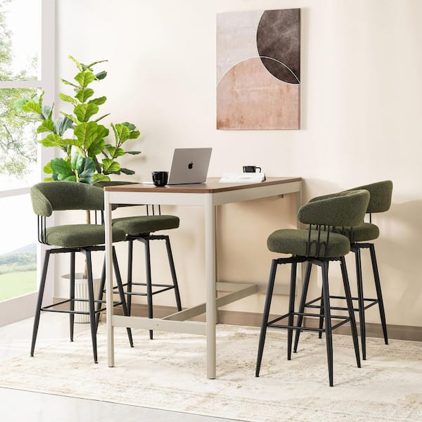 40.50 in. H Modern Hunter Green Fabric Swivel Bar Stool with Tapered Black Metal Legs(Set of 2)