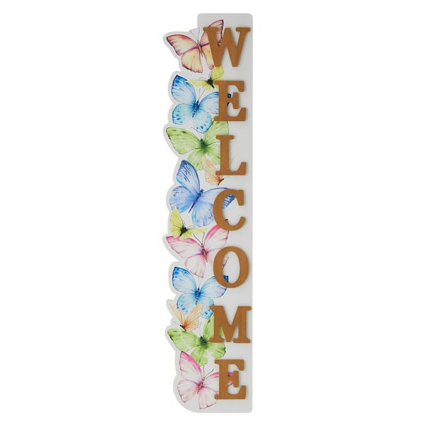42 in. H Solid Wood WELCOME Porch Sign with Butterfly