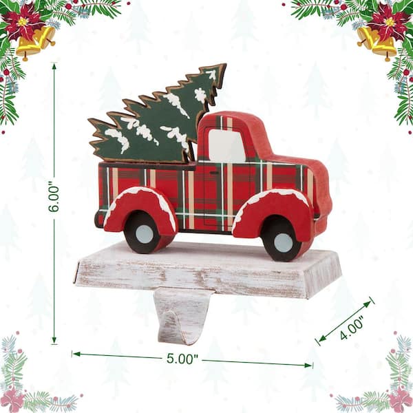 6.12 in. H Wooden/Metal Red Truck Stocking Holder