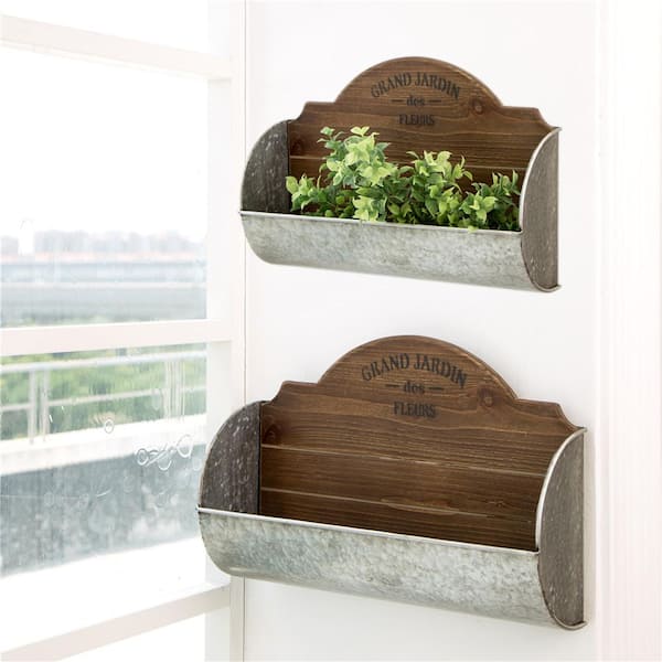 Farmhouse Galvanized Metal and Wooden Wall Planter (Set of 2)
