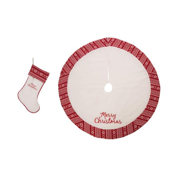 Set of 2 White Fleece Christmas Decoration (48.00 in Tree Skirt and 21 in. Stocking )