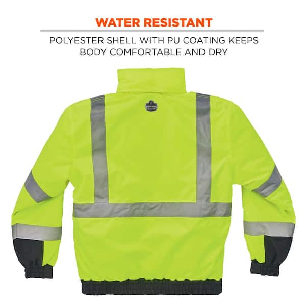 Men's Large Lime High Visibility Reflective Quilted Bomber Jacket