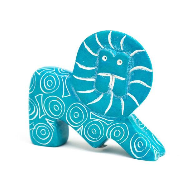 Small Soapstone Lion Figurine - Set of 3, Turquoise