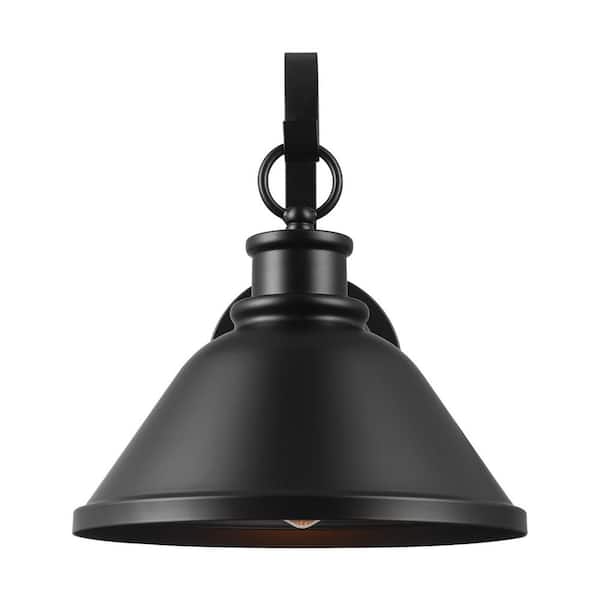 1-Light Outdoor Wall Sconce Matte Black, 10 in. Warehouse Shade, Gooseneck Stem, Porch Light, Wall Lighting, Patio Decor