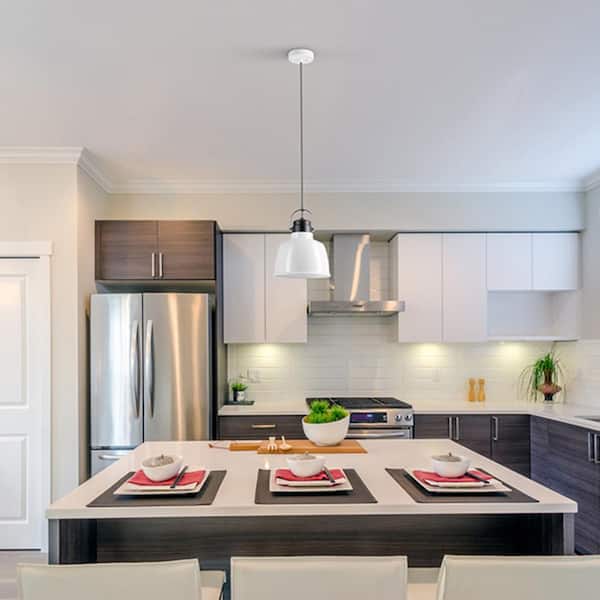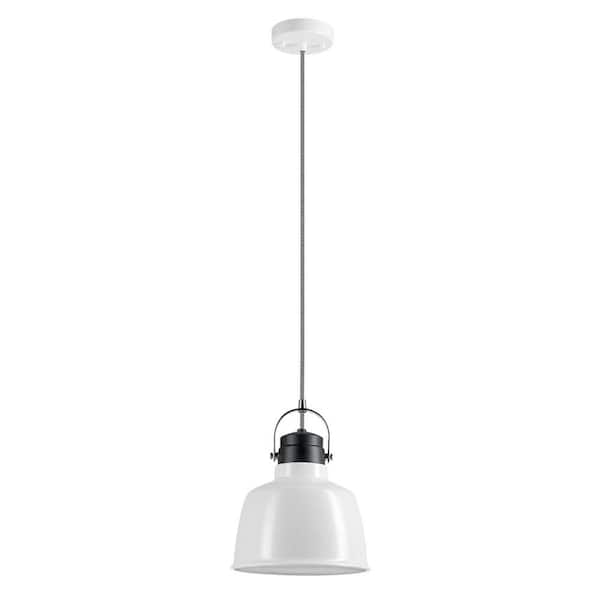 1-Light White Pendant Black Accent with Black and White Chevron Fabric Cord