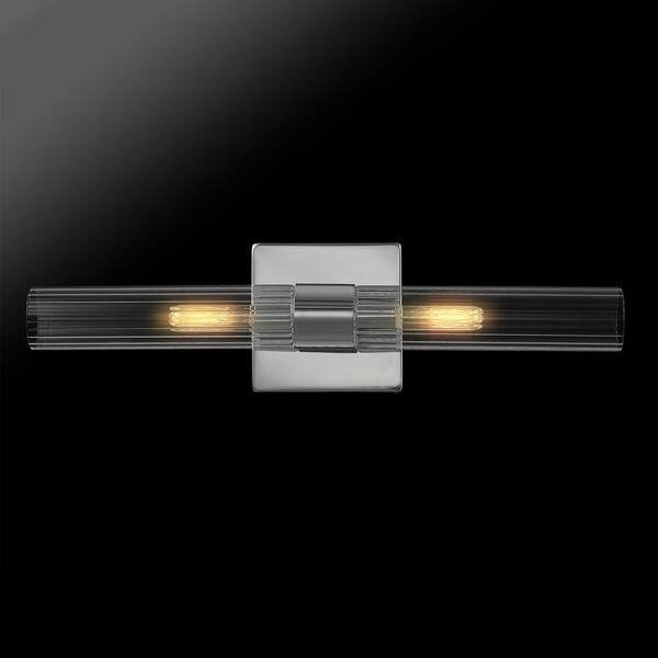 18 in. 2-Light Chrome Vanity Light with Ribbed Glass Shades