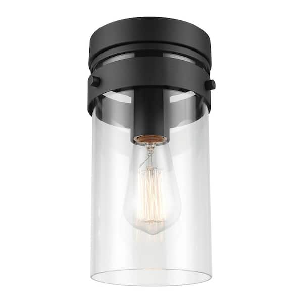 Brookdale 1-Light Matte Black Outdoor/Indoor Flush Mount Light with Clear Glass Shade