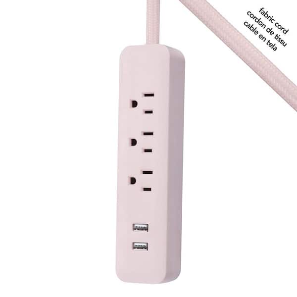 Designer 3-Outlet 2x USB Ports USB Power Strip, Rose Quartz