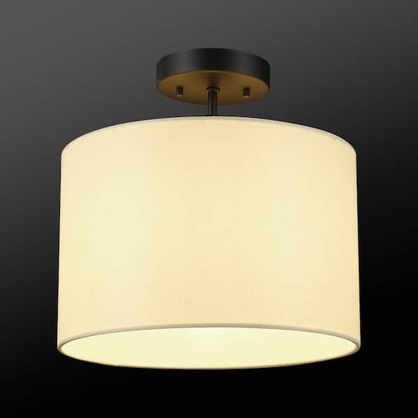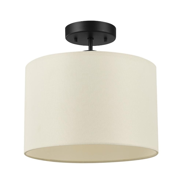 Jonas 12 in. 1-Light Matte Black Flush Mount with Beige Linen Shade