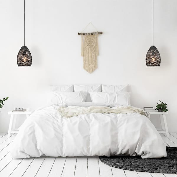 Kora 1-Light Matte Black Shaded Pendant Light with Black Twine Shade