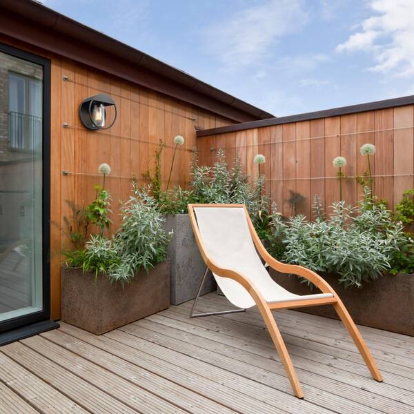 Neruda Matte Black Modern Indoor/Outdoor 1-Light Wall Sconce with Seeded Glass Shade