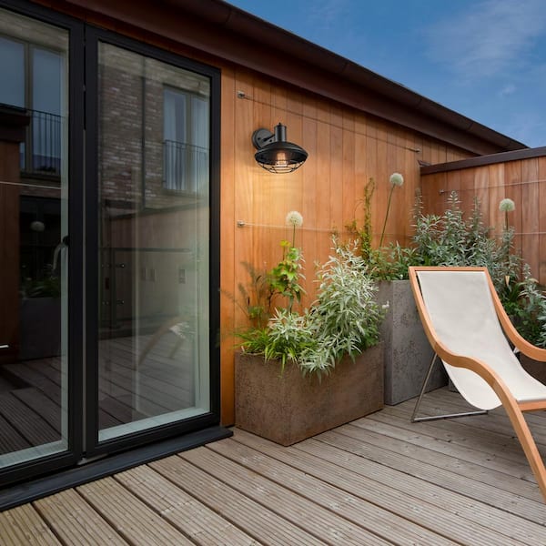 Oliver Matte Black Farmhouse Indoor/Outdoor 1-Light Wall Sconce with Caged Shade