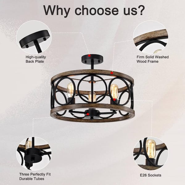 17.72 in. Flush Mount Farmhouse Chandelier Ceiling Light Fixtures for Kitchen Living Room, Matte Black