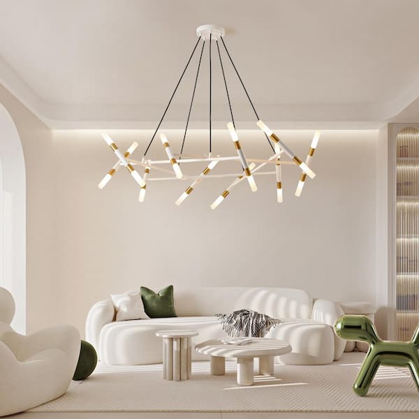 20 Light White Modern Chandelier Light Fixture, Branch Design with Frosted Tubes, Adjustable Height Pendant, No Bulb